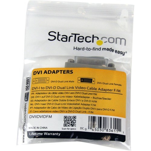 StarTech.com DVI-I to DVI-D Dual Link Video Cable Adapter - 1 x DVI-D (Dual-Link) Digital Video Male - 1 x DVI-I (Dual-Link) Video Female - Grey Menos