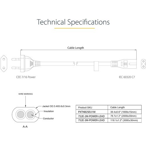 StarTech.com 1m Standard Laptop Power Cord - EU to IEC320 C7 Power Cable Lead - C7 EU Laptop Power Cord - Replacement Laptop Power Cable - 1m (3.3ft) Laptop Power Cord EU Plug to IEC C7 | AC Power Cord for Most Notebooks Power Brick | Molded Connectors - SPECS: EU Plug to IEC 60320 C7 | 18AWG (0.75mm2) | 250V 2.5A | 2 Conductor | Non-Polarized | H03VVH2-F Rating | PVC Jacket Menos